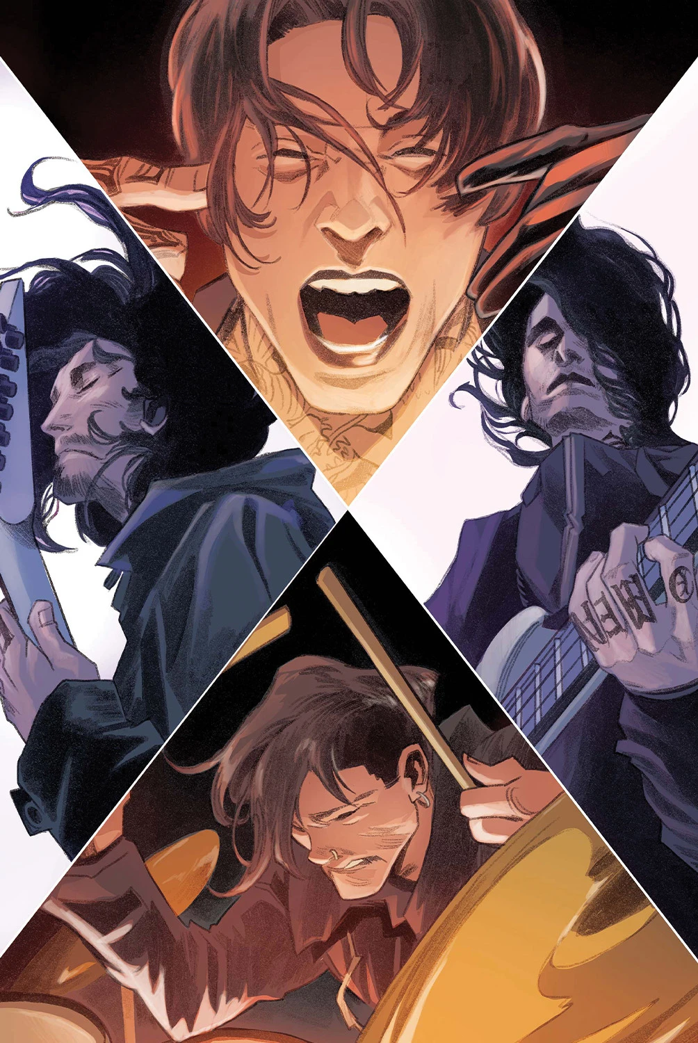 From the mega-viral and chart-topping band known as Bad Omens, comes this comic series based on their newest record, The Death of Peace of Mind. Bad Omens is one of many crime syndicates that operate in the largest district of the lawless and predominantly self governed Concrete Jungle.
