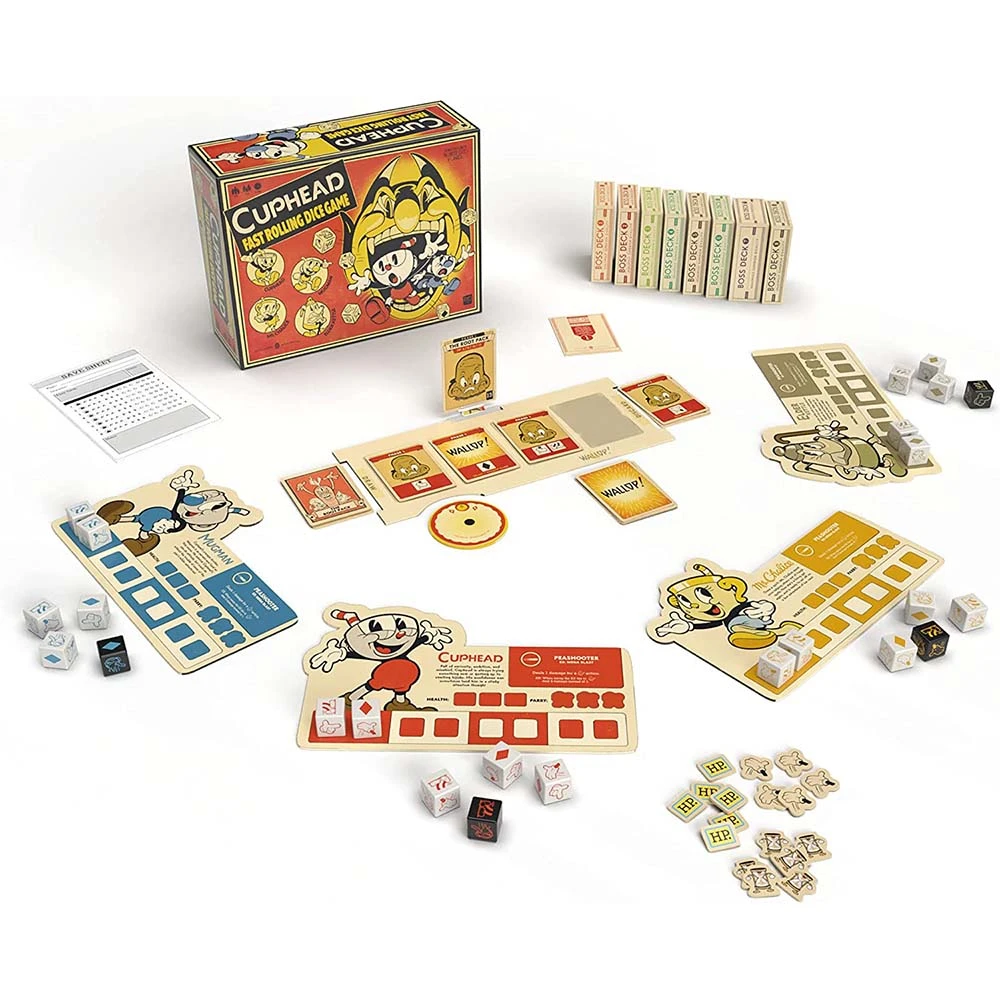 From the popular Cuphead video game, comes an all new fast action, original co-operative dice game where players must roll dice to defeat iconic bosses.