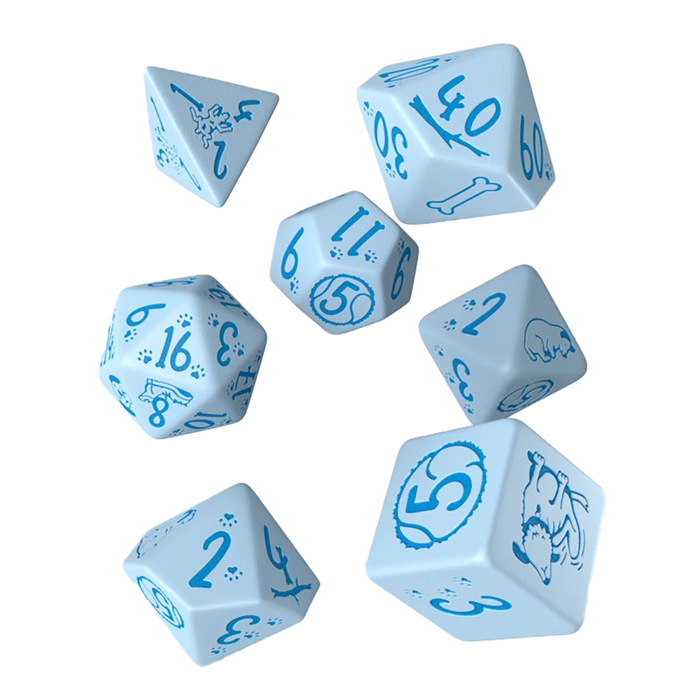 The DOGS Dice Set: Max is more than just dice. It’s a tribute to our furry friends and their joyful stunts. The blue painting on the powder blue background represents the dogs’ love for running free outdoors, where the blue sky above their heads is the only limitation.
