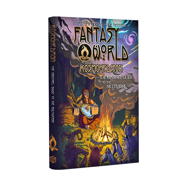 Fantasy World Kosmohedron is an anthology of quick-settings, written by an incredible roster of international authors, including Nathan D. Paoletta, Grant Howitt, and Kira Magrann, each presenting a collection of thematic elements put together to boost, enrich, and expedite the world-building step of your First Session, and to color subsequent play with highly evocative and unique ideas, options, and details.