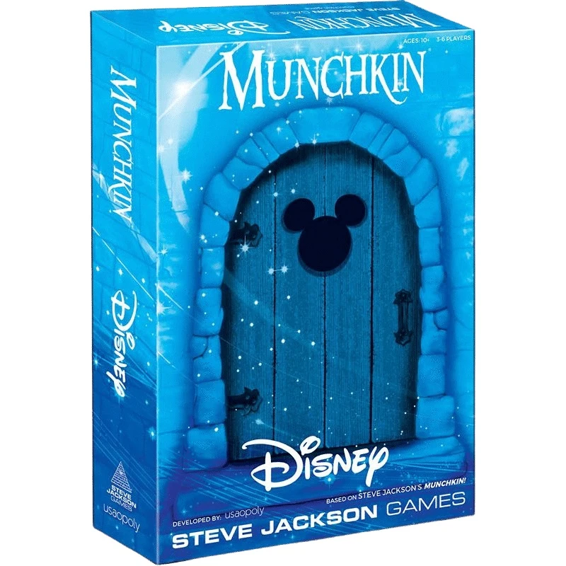 Munchkin: Disney combines the treasure-hunting, back-stabbing, and leveling-up fun of the best-selling card game Munchkin with timeless Disney characters, phrases, and objects. Kick open a door to encounter monsters like infamous villains Jafar and Ursula, while trying to avoid curses such as Forever Asleep and Poison! Obtaining the glorious treasure cards will fill your hands with bonus items, abilities, and allies including Maui’s Hook, Magic Carpet, or Elsa, which can assist in combat, help, or hinder other players whose objective is also to reach Level 10.