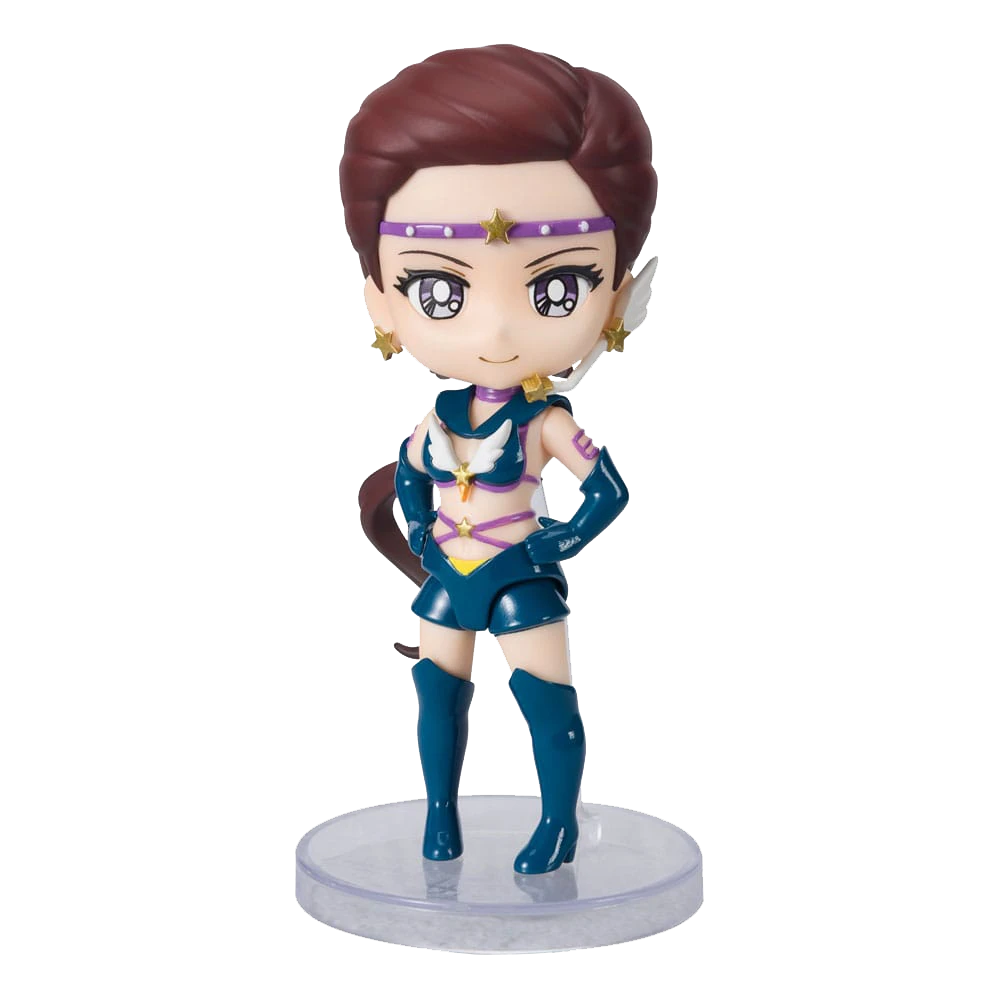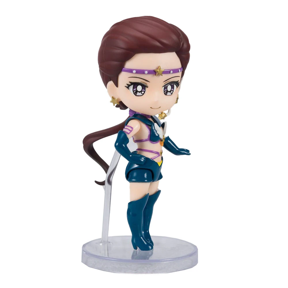 SAILOR STAR MAKER joins Figuarts mini, the series featuring your favorite characters, stylized with adorable proportions and expressions. The Glittering Eye system brings the luster of her eyes to dramatic life. Neck, shoulders, and legs are posable, and optional arms add even more expressiveness!