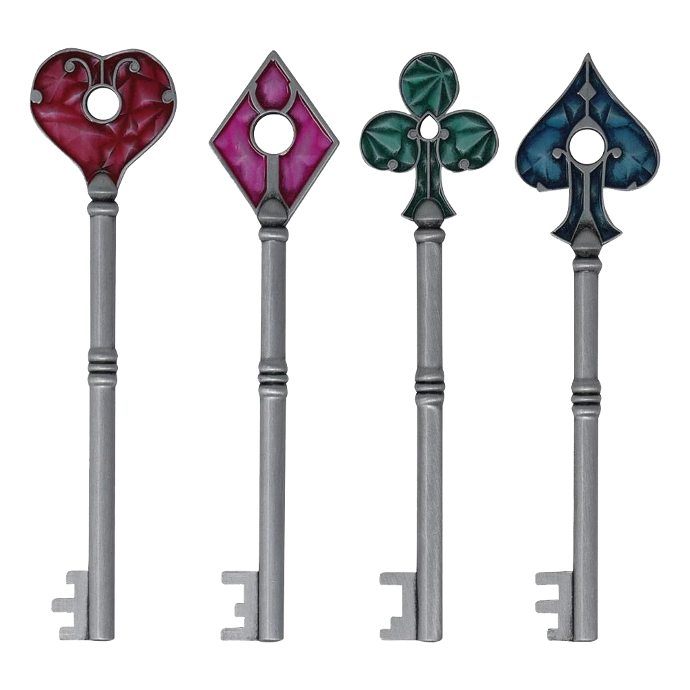 This Limited Edition Replica Key Set features the 4 unique metal keys from the game, with beautiful enamel colouring and a display stand.
