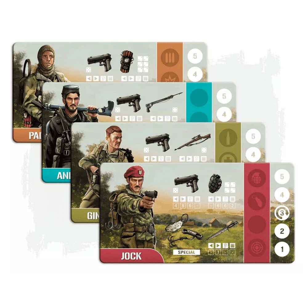 Each turn, every SAS operator has 4 action points which they can use to move, shoot and carry out tasks. During the “stealth phase” of the game, enemy movement is dictated by patrol lines, sentry points and an event card which is drawn each turn. Each mission has a stealth meter which will slowly fill each time the players arouse suspicion (firing weapons, leaving bodies out in the open etc.)